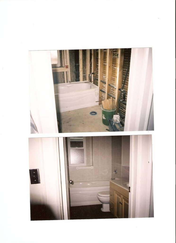 Complete bathrooms, before and after.