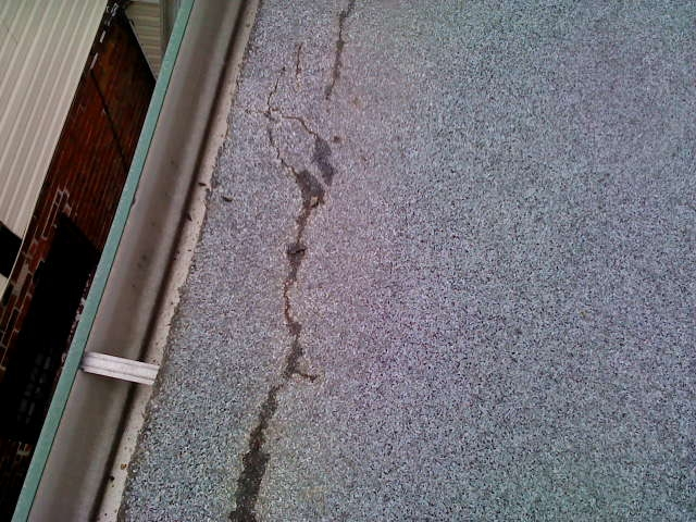 Worn and cracked sloped roof