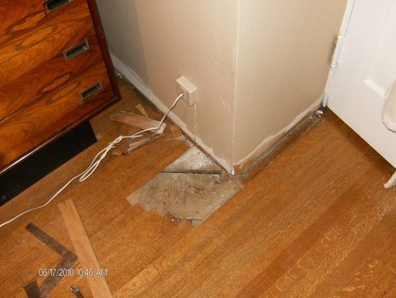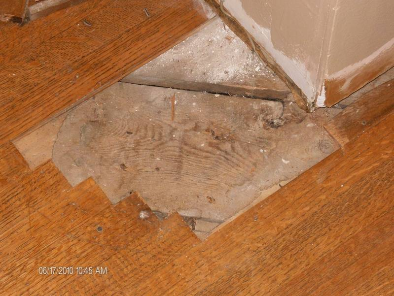 Hardwood floor repairs (before).